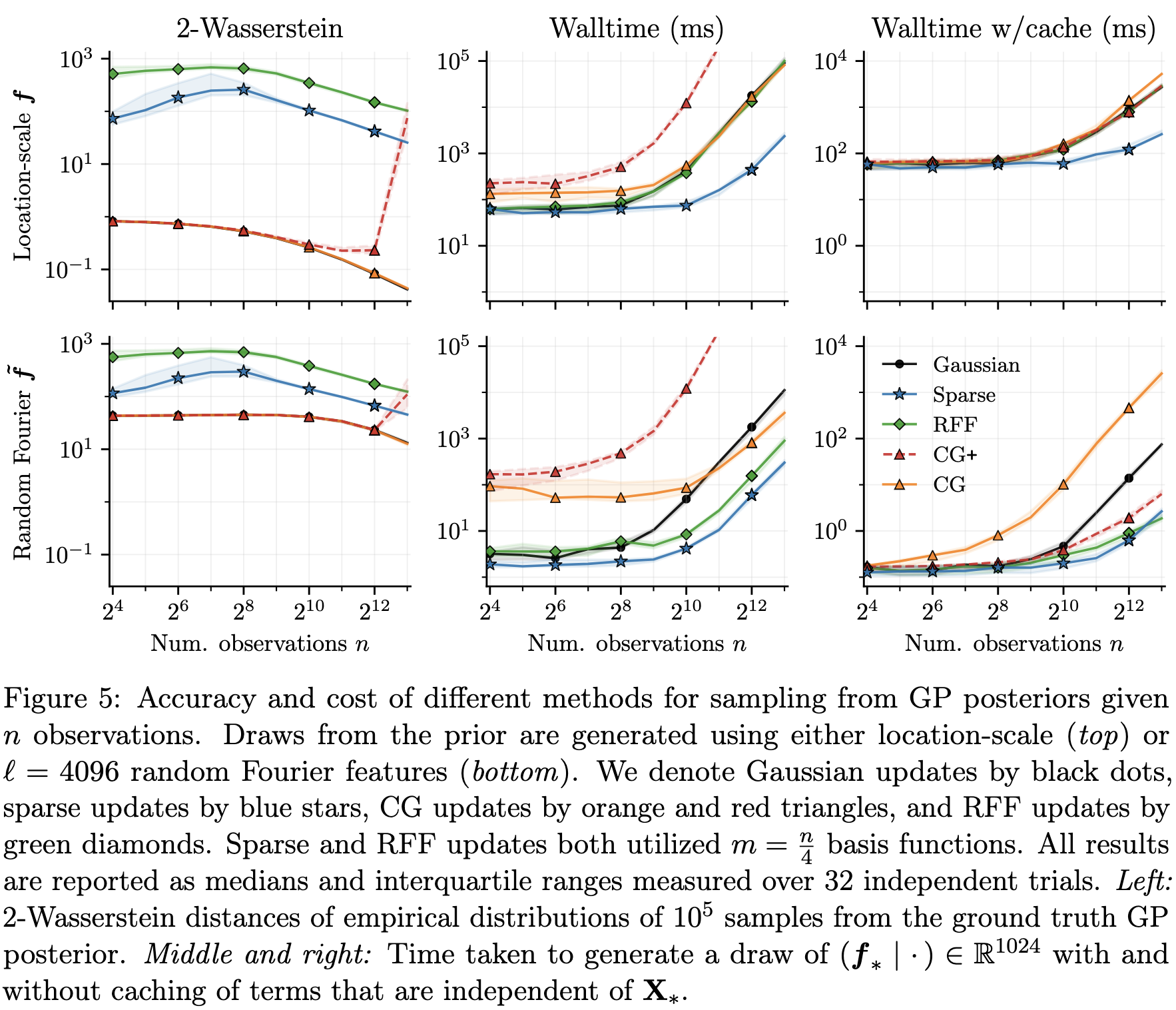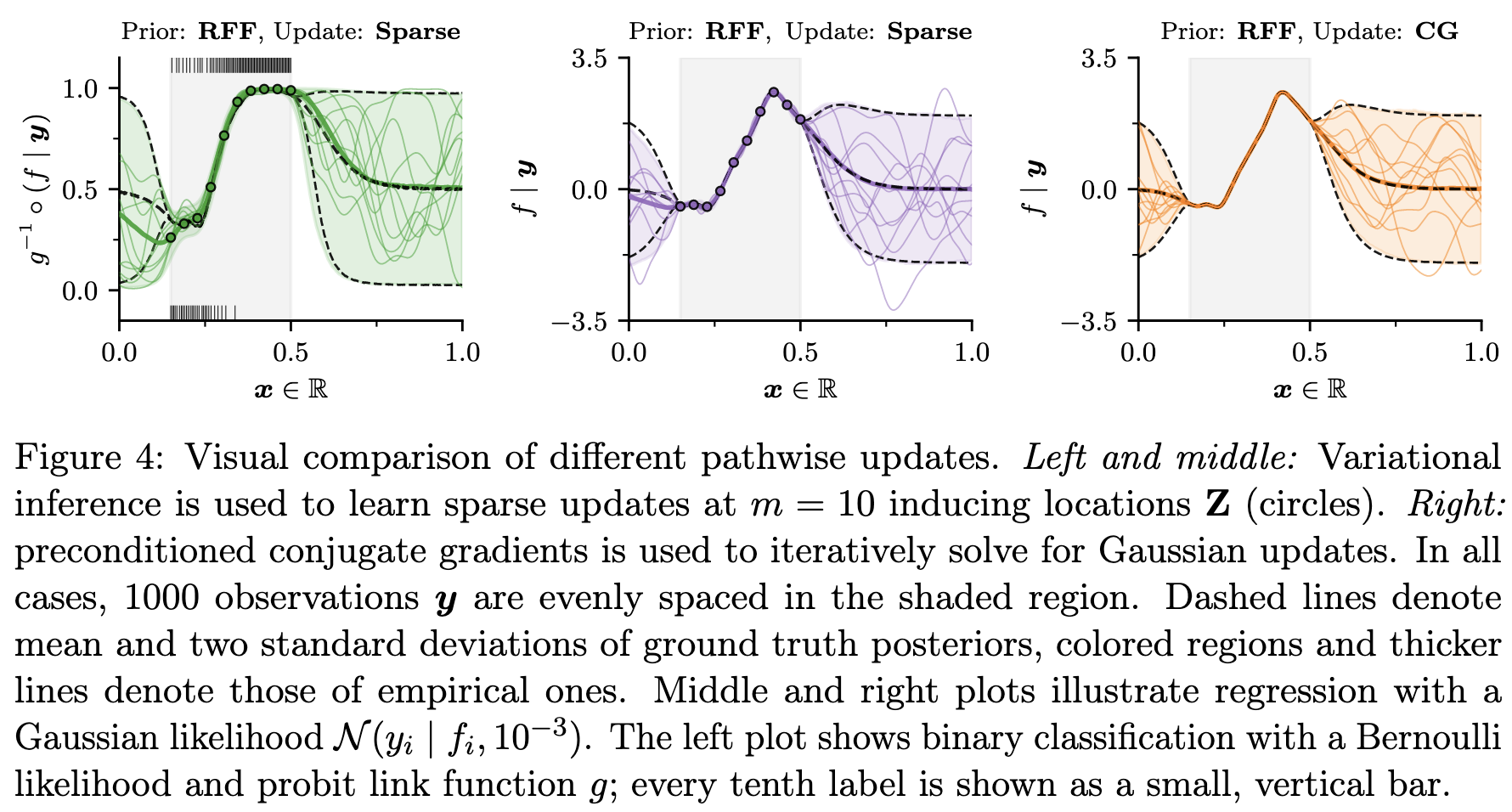 All of the above can be mixed-and-matched to approximate the prior and update terms of the Matheron update to utilise their respective pros. For example, the results in J. T. Wilson et al. (2021) suggest that random Fourier feature is good for approximating the prior term, while conjugate gradient is suitable for approximating the update.